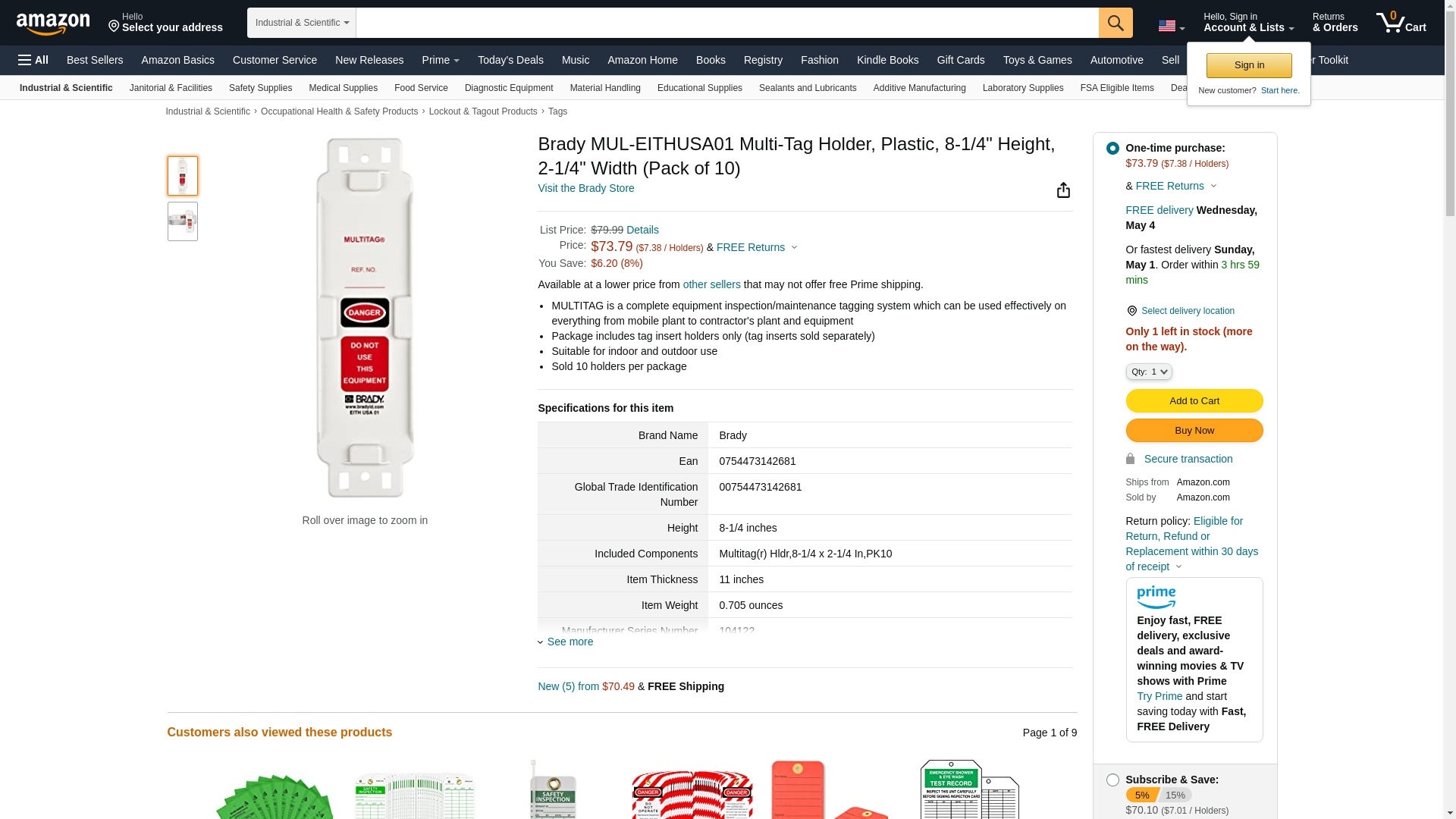 Brady MUL-EITHUSA01 Multi-Tag Holder, Plastic, 8-1/4" Height, 2-1/4" Width (Pack of 10)