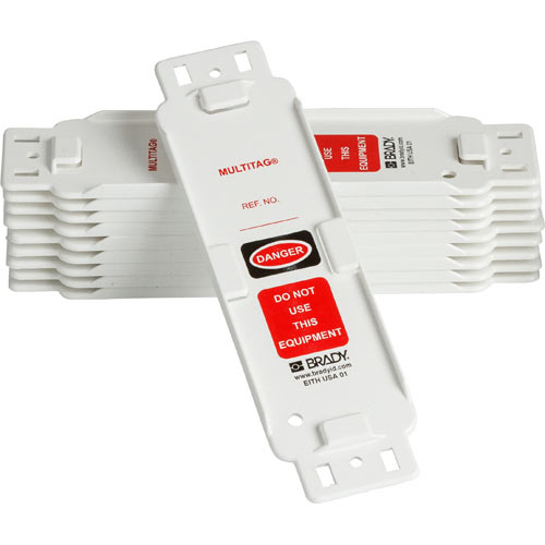 | Feature | Price For: Each Standards: ANSI Z53.1-1967; ANSI Z535-2006; OSHA 1910.145 Legend: Danger Do Not Use This Equipment Background Color: Red, White Header Background Color: Black, Red Language: English Header Legend Color: White Write on Surface: Yes Legend/Background Color: Black and Red/White Width: 2-1/4" Legend Style: Text Material: Plastic Item: Multitag(R) Holder |