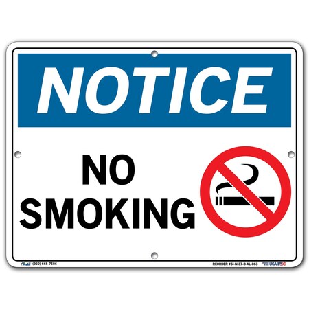 Vestil SI-N-37-B-AL-063 Notice Sign Aluminum .063" Overall Size 12.5"W x 9.5"H No Smoking , 9.5" Height, 12.5" Wide, 0.063" Length
