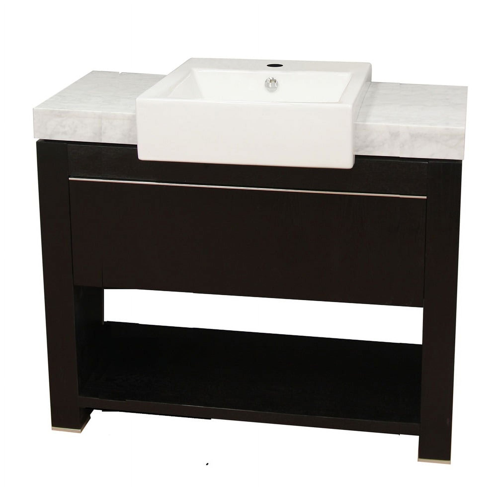 - Features wide unique ceramic square sink just hangs over the countertop makes this vanity has more modern vibe