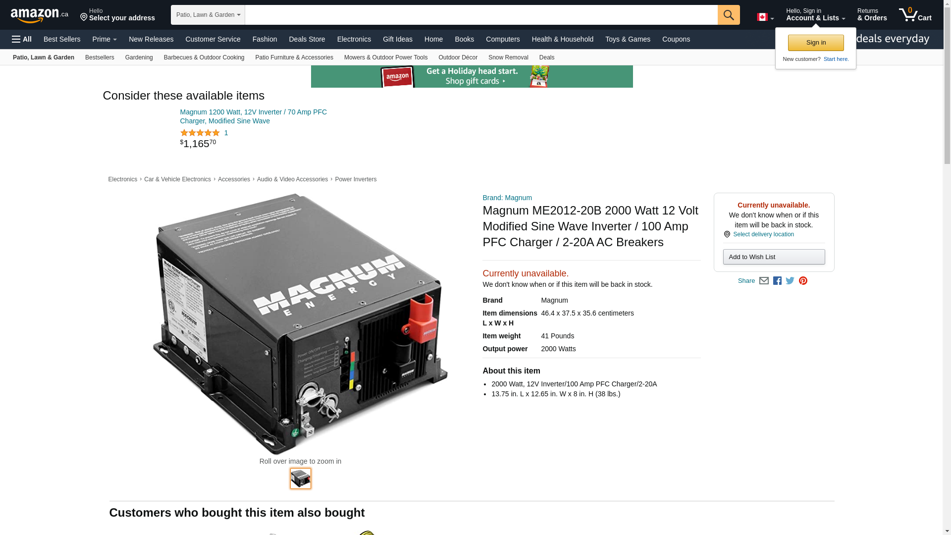Magnum Energy ME2012-20B 2000 Watt, 12V Inverter/100 Amp PFC Charger