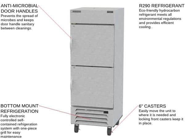 Beverage-Air HBR27HC-1-HS Horizon Series 25.88 Cu. Ft. 2-Half Door Bottom-Mount Reach-In Refrigerator 30"W | Restaurant Equippers
