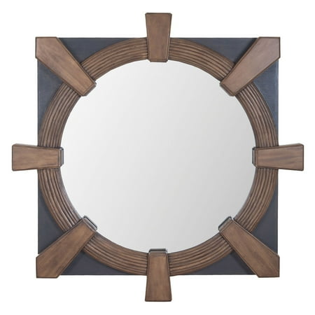 A Weathered Mahoghany and Antique Smoke flatiron tondo mirror made of solid mahogany and mirror