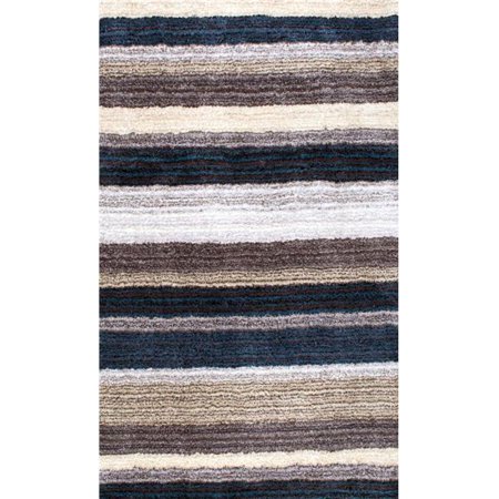 nuLOOM Drey Striped Shag Area Rug - 6x9 Shag Area Rug Casual Blue Multi/Brown Rugs for Living Room Bedroom Dining Room Nursery