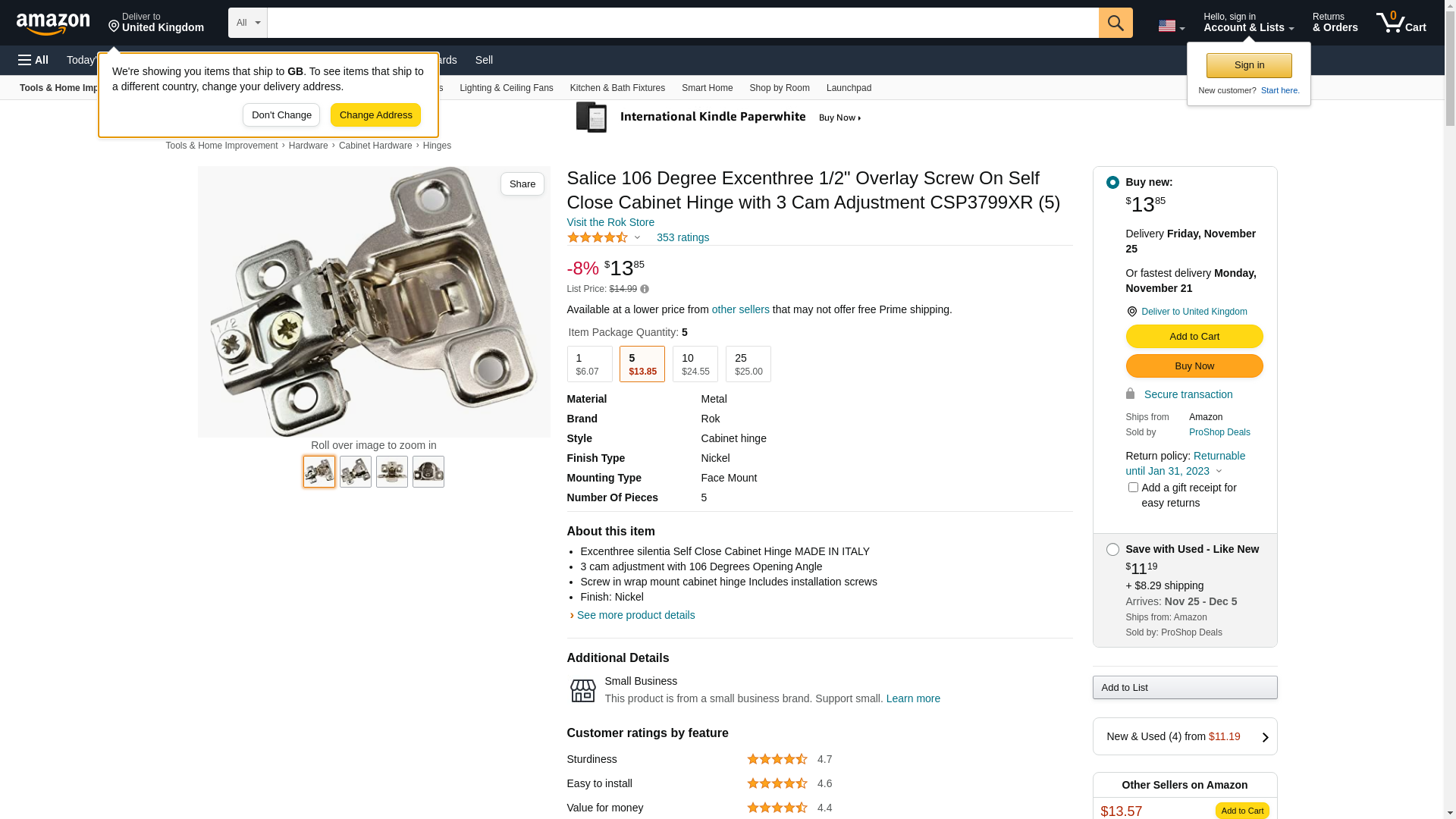 Pro Pack of 10Pcs, Hinge Ff Sc 106D, Screw-On, 1/2" Overlay 3C