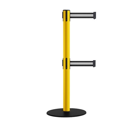 Stanchion Dbl Belt Barrier Yellow Post Low Base 13ft. Black/Wh HL Belt