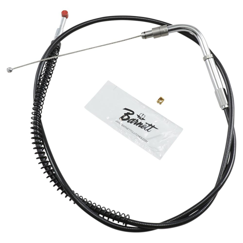• Barnett Performance Products cables are smooth working, long lasting and tough• Featuring a nylon lined, PVC coated casing with a standard diameter so they fit directly back into the original cable holders• +6″ extended cable with an overall length of 35″• 130° push in end and a black vinyl finish• Cables length is measured by the casing length only not including the metal ends• Replaces OEM 56633-08