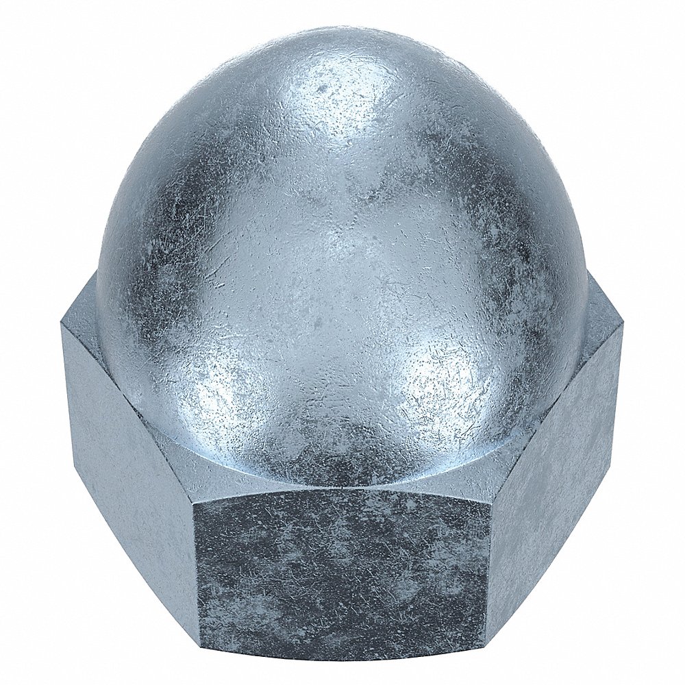Cap Nut, Profile High Crown, Material Grade/Class Class 6, Material Steel, Finish Zinc Plated, Thread Size M12-1.75, Overall Height 22 mm, Dimensional Standards DIN 1587, System of Measurement Metric, Color Silver, Pack Size Small Pack, Thread Direction Right Hand, Package Quantity 50