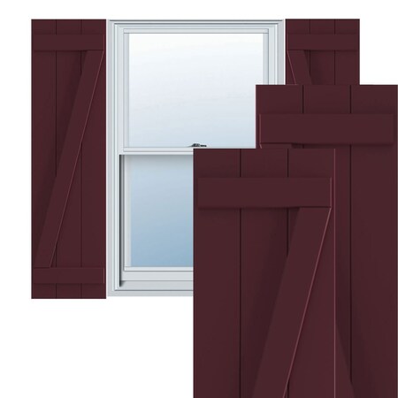 16 1/8"W x 42"H True Fit PVC, Three Board Joined Board-n-Batten Shutters w/Z-Bar, Wine Red (Per Pair - Hardware Not Included)