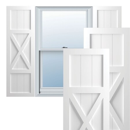 Ekena Millwork TFP107FH12X036UN True Fit PVC Center X-Board Farmhouse Fixed Mount Shutters, (Per Pair-Hardware Not Included), 12"W x 36"H, Unfinished