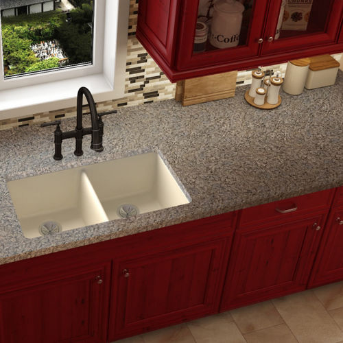 Discount deal available on the Elkay Quartz Luxe Parchment 33in x 19in x 10in Double Bowl Undermount Kitchen Sink, Rear Center Drain - ELXU3322PA0 from our online store. We have wholesale Elkay supply..