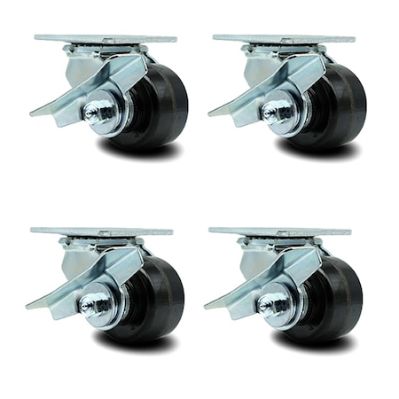 3.25 Inch Phenolic Caster Set with Ball Bearings and Brake/Swivel Lock SCC
