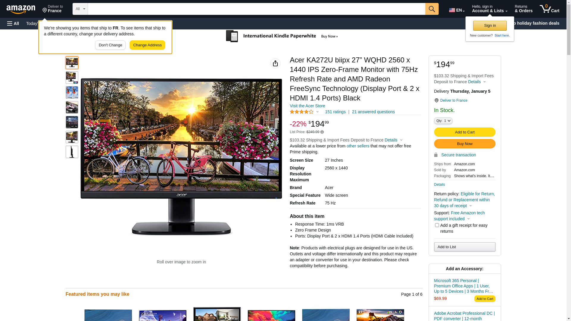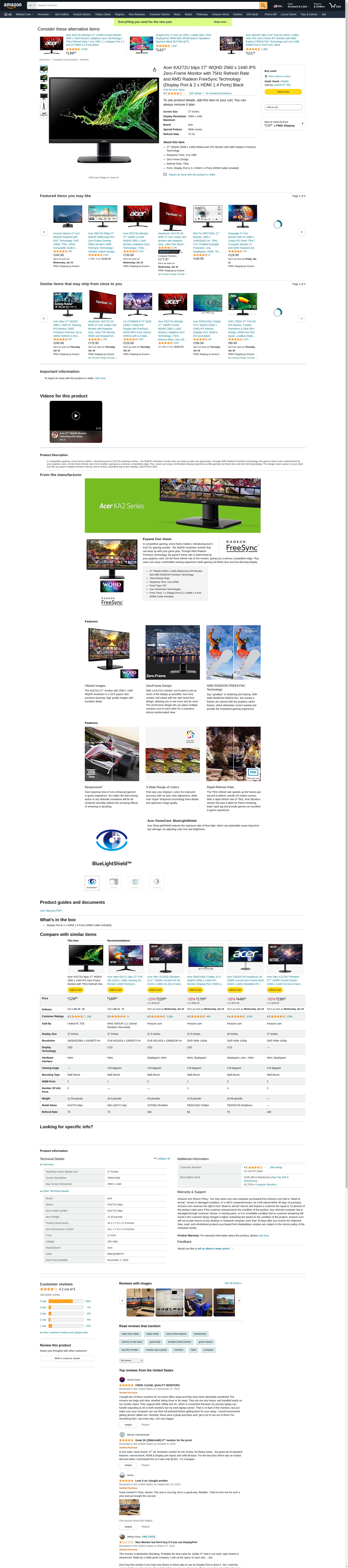 acer KA2-27" Monitor WQHD 2560x1440 AMD Free-Sync 75Hz IPS 16:9 1ms VRB 250Nit (Renewed)