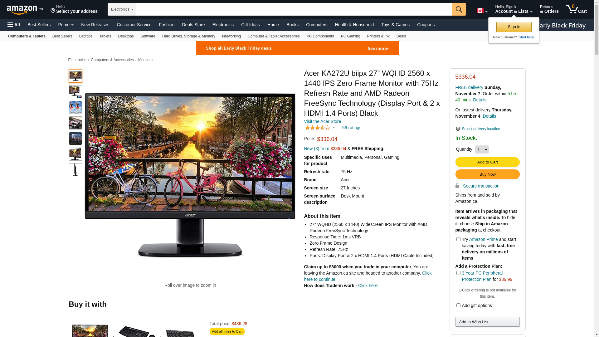 Acer KA272U biipx 27” WQHD 2560 x 1440 IPS Zero-Frame Monitor with 75Hz Refresh Rate and AMD Radeon FreeSync Technology (Display Port & 2 x HDMI 1.4 Ports) Black