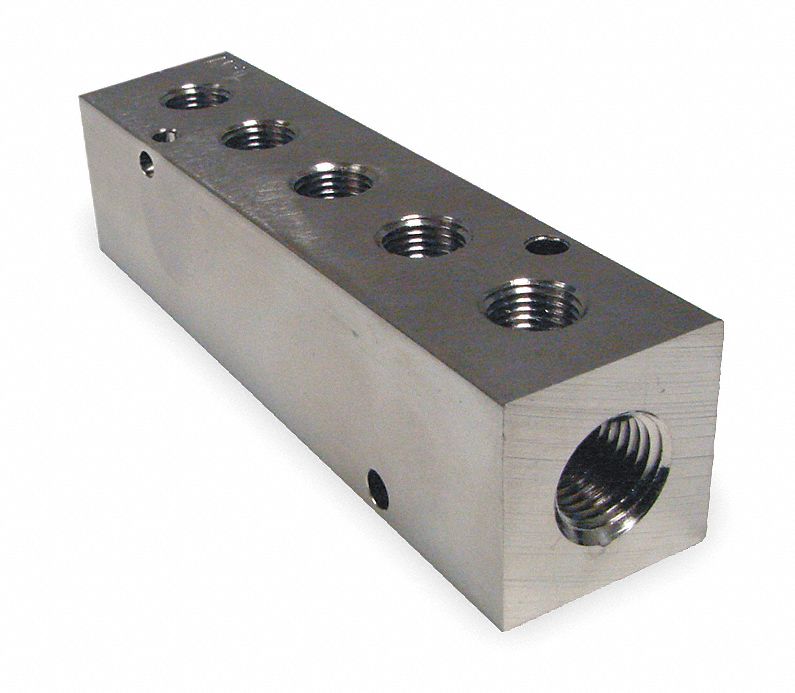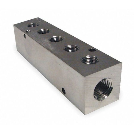 | Feature | Price For: Each Max. Pressure: 1000 psi Fitting Connection Type: NPT Number of Inlets: 2 Item: Manifold Pipe Fitting Material: Nickel Plated Aluminum Temp. Range: -10 Degrees to 200 Degrees F Inlet Size: 1/4" Outlet Size: 1/8" Overall Length: 4" Overall Height: 1" Mounting Hole Size: 0.17" Overall Width: 1" Number of Outlets: 5 |