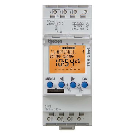 Lumenite TR-612-TOP-2-120V Theben AC 7 Day/24 Hours Din Mounting 2 Channel Digital Time Switch, 56 Memory Locations