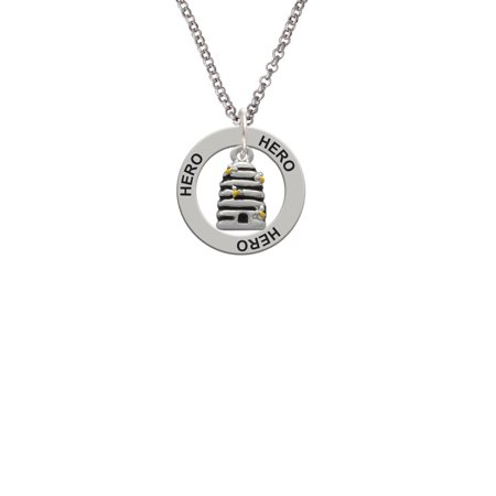 Silver Tone Small Beehive with 4 Bees Little Sister Affirmation Ring Necklace. Silver Tone, hand enameled charms. Charm size is approx. 0.6 x 0.66 x 0.14 inches (HxWxD) including loop. Silver tone 2mm Belcher Chain Necklace is approx. 23 Inches with a Lobster Claw Clasp. Affirmation Ring is approx. 0.86 x 0.86 x 0.05 (HxWxD). This inspirational piece of jewelry is very meaningful. Its circular shape is symbolic for endless belief in the message that is imprinted around the ring. These are motivational or sentimental messages to the wearer. Makes a great team gift! PLEASE NOTE: Our products are lead safe, but are not intended for children 14 years and younger.