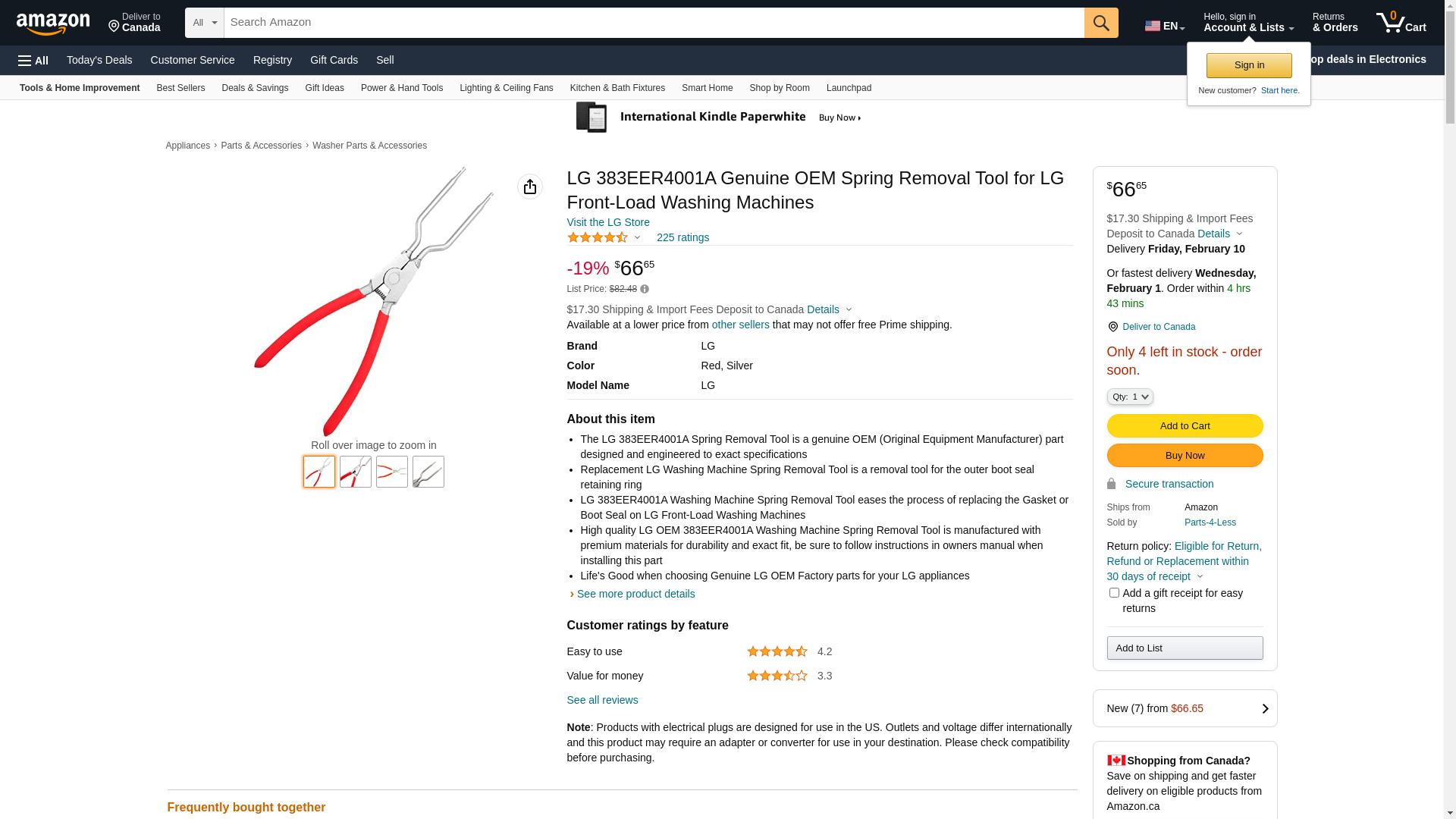 ![]() lgparts.com | 383EER4001A | 1 | 72 | 1 | 1 @ $83.95 |