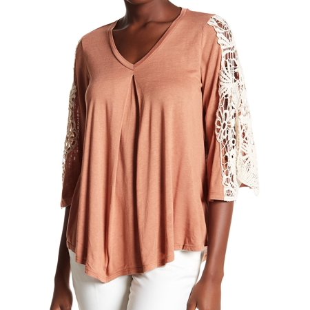 Bobeau NEW Orange Women's Size XS Crochet Lace Bell V-Neck Blouse