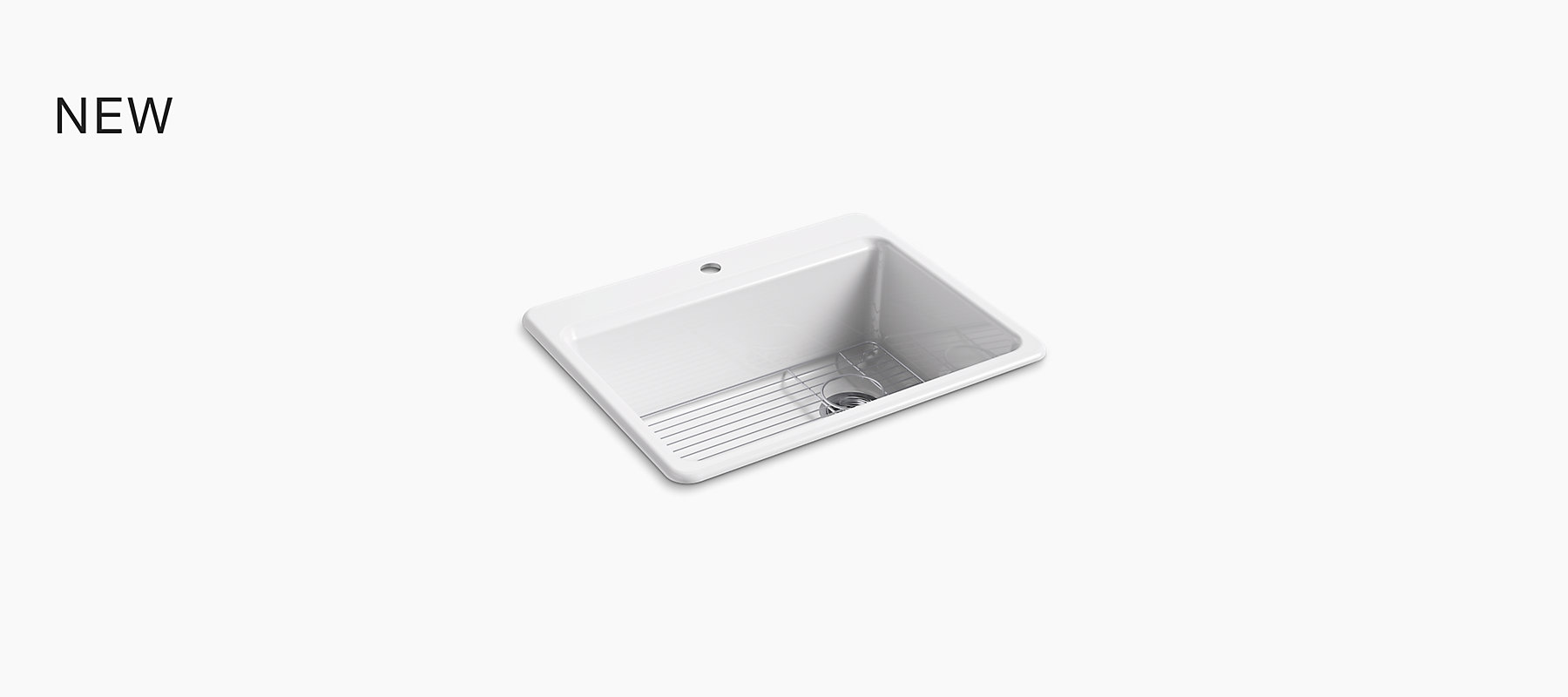 KOHLER K-8668-1A1-0 RIVERBY 27 INCH SINGLE BASIN CAST IRON KITCHEN SINK FOR DROP IN INSTALLATIONS - BASIN RACK...
