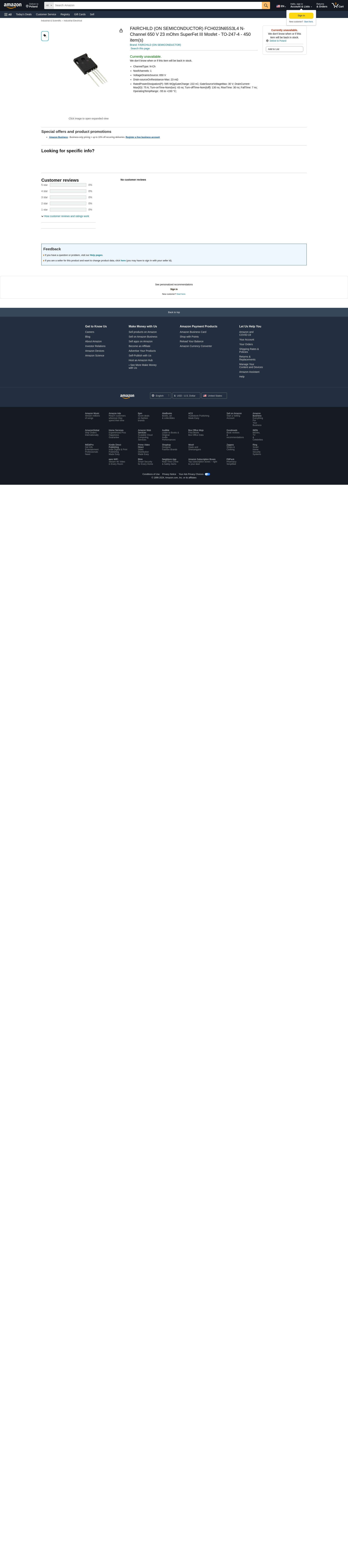 Onsemi Mosfet, N-Ch, 650V, 75A, 150Deg C, 595W Rohs Compliant: Yes - FCH023N65S3L4