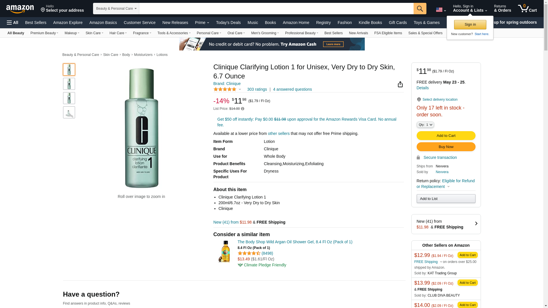Clinique Clarifying Lotion 1 for Unisex, Very Dry to Dry Skin, 6.7 Ounce: Maxedbuy.com