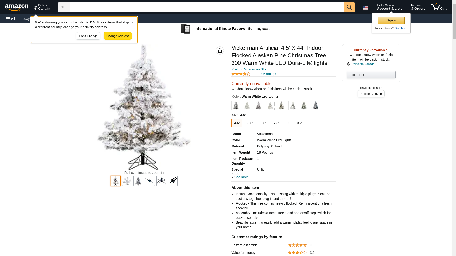 Artificial Flocked Christmas Tree - Pre-Lit - Flocked Alaskan Tree by Vickerman. The Flocked Alaskan Christmas Tree adds grand elegance to your holiday decor. It has a green foliage covered with heavy flocking. Warranty: 10 year warranty on construction. Specifications Height: 6.5 Foot with stand Width: 62 Inch Lights: Branch Tips: 1,045 tips. All branch tips are the same size and color. Branch Construction: The branch needle is made of PVC. PVC is the standard in artificial Christmas foliage. Stand: Sturdy metal stand is included. Manufacturer: Vickerman Additional Information Ornaments: As with most PVC trees, the wire goes all the way to the tip on every branch. This tree holds many ornaments. Safety: UL Listed lights with anti-twist sockets Construction: The branches are permanently attached to the center pole using hinges. Center pole disassembles (with branches attached) for storage purposes. Usage: Indoor Only Shipping Information United States: Free Shipping via UPS Ground to 48 contiguous United States. Hawaii / Alaska: Shipping charge applies. Select 'UPS Alaska / Hawaii' on shipping page during checkout. Expedited: Select UPS Overnight, 2nd Day or 3rd Day on shipping page during checkout. Canada: Ship to US border town or see International below. International: Customer responsible for arranging freight forward service from US to destination country. Free UPS Ground to freight forward service located in 48 contiguous United States. Warranty does NOT cover freight forward costs. Packaging: Box Pounds Length Width Height 1 45 53" 20" 19"