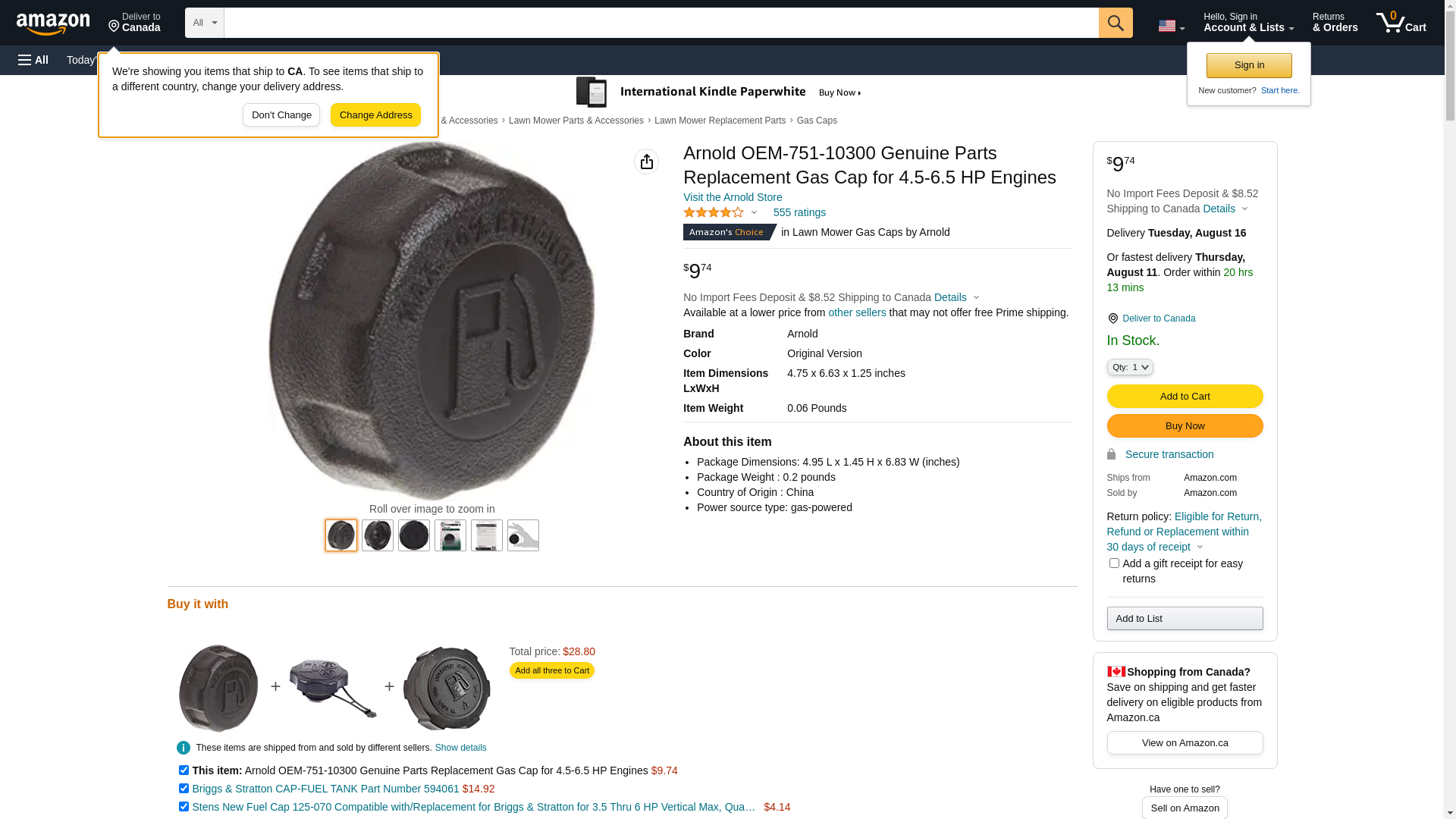 Arnold OEM-751-10300 Genuine Parts Replacement Gas Cap for 4.5-6.5 HP Engines