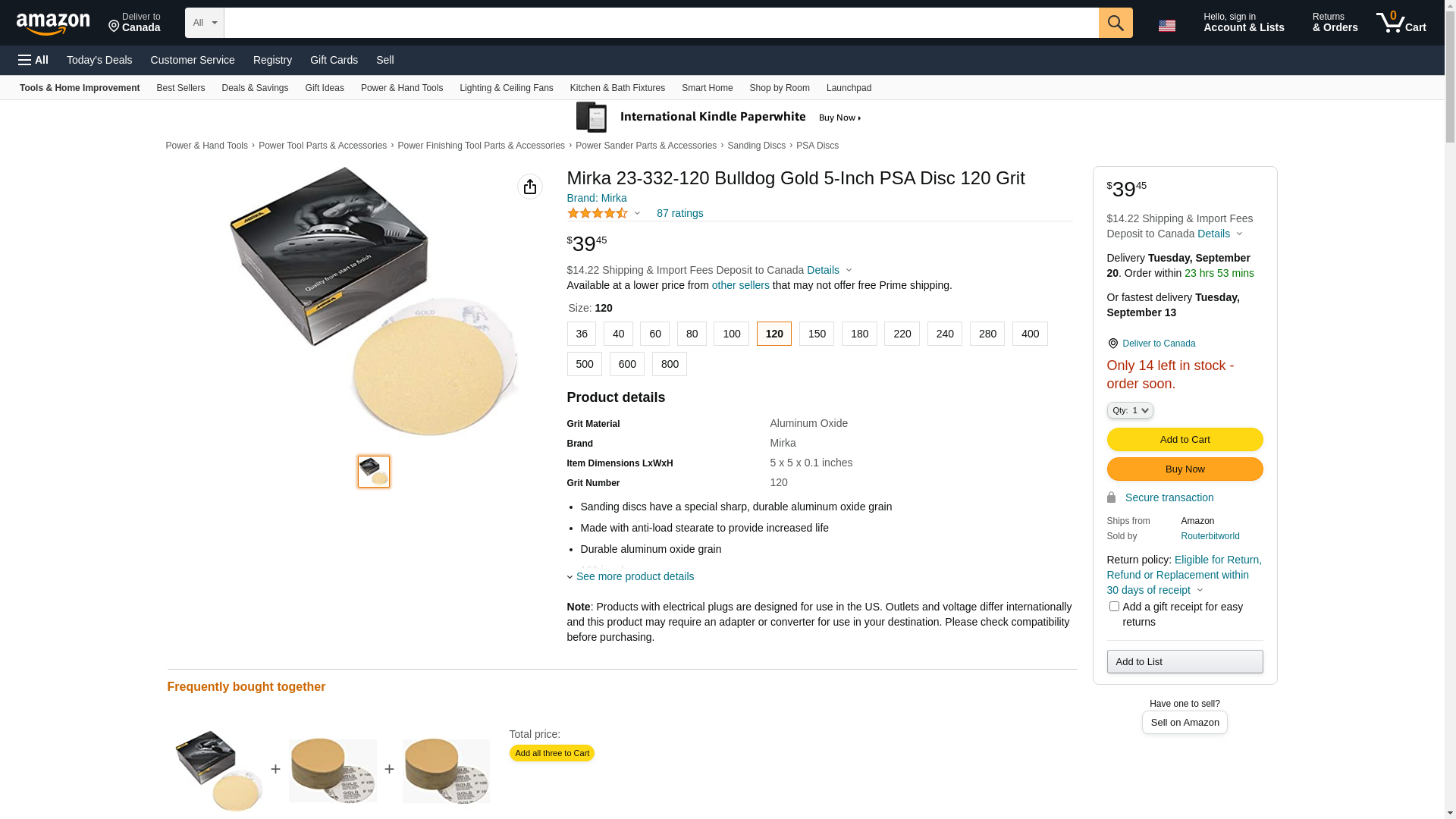 Mirka 23-332-120 Bulldog Gold 5-Inch PSA Disc 120 Grit