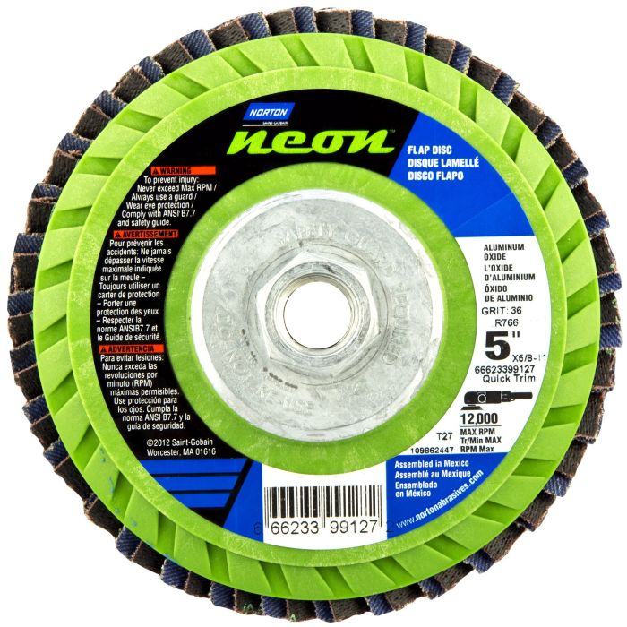 Norton 66623399131 Flap Discs 5 X 5/8-11 80 Grit Neon R766