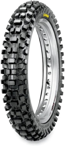 Tire Width, 110 Aspect Ratio %, 90 Wheel diameter, 18 Position, Rear Construction, Bias Classification, Off road Tube, Tube Type (TT) Load speed, 61M (130 km/h / 567 lbs) Sidewall, Black Tire Size, 110/90 18 Number, 019291Tread design excels in a wide variety of intermediate terrains on the MX track or in the woods Stable block pattern provides predictable acceleration and braking Durable tire construction for lasting performance