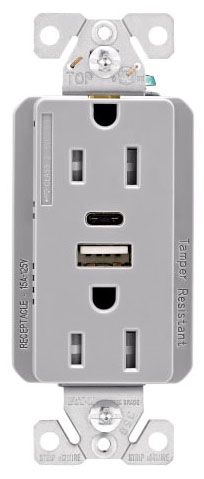 Eaton Wiring Devices TRUSBAC15GY-BOX 5.0A USB A-C DUPLEX RECP 15A 125V GY - KTOOL