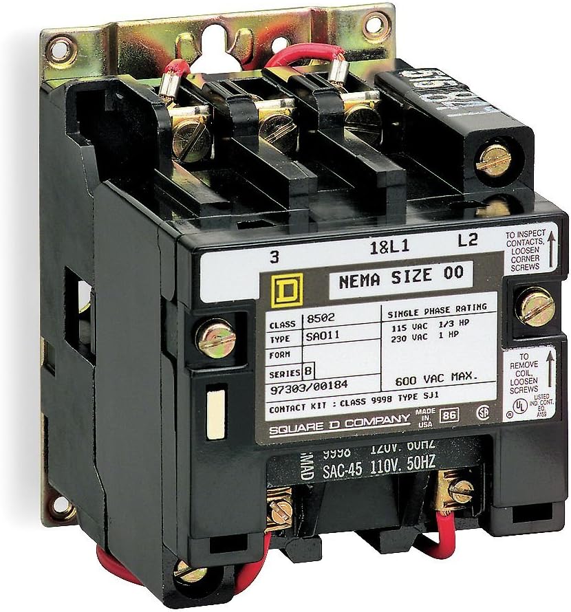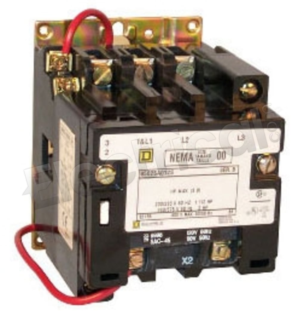 Class 8502 Type S magnetic contactors are used to switch heating loads, capacitors, transformers, and electric motors where overload protection is separately provided. Normally open holding-circuit contact for 3-wire control is provided as standard. Type S contactors are designed for operation at 600 Volts maximum. Used with heating loads, capacitors, transformers, electric motors, and other power loads where overload protection is provided separately. Commonly used in contruction, infrastructure, oil and gas, transportation and other applications. In accordance with NEMA standards.<br /><br /> Item: NEMA Magnetic Contactor<br /> Full Load Amps: 9<br /> Coil Volts: 208VAC<br /> NEMA Contactor Size: 00<br /> Reversing: No<br /> HP @ 3 Phase - 208V: 1-1/2<br /> HP @ 3 Phase - 240V: 1-1/2<br /> HP @ 3 Phase - 480V: 2<br /> HP @ 3 Phase - 575V: 2<br /> Number of Poles: 3<br /> Enclosure NEMA Rating: No Enclosure<br /> Hz: 50/60<br /> Height: 4.34"<br /> Width: 3.22"<br /> Depth: 4.22"<br /> Frame / Series / Class / Code: Class 8502<br /> Standards: UL, CSA<br />