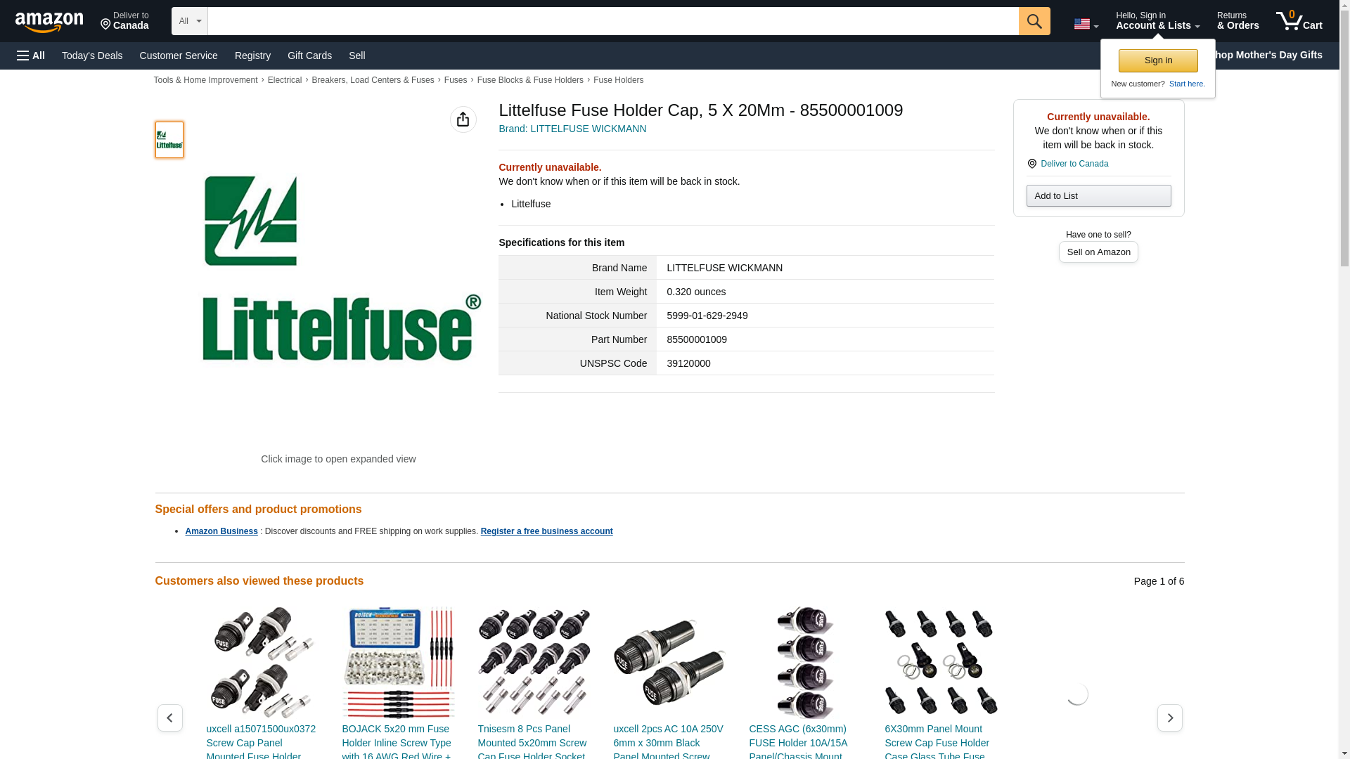 LITTELFUSE WICKMANN 85500001009 Fuse Holder Cap, 5 X 20MM