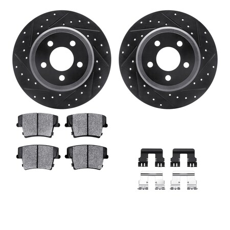 Dynamic Friction Company Rear Brake Rotors-Drilled and Slotted-Black with 5000 Advanced Brake Pads includes Hardware 8512-39006