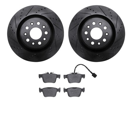 8602-79003, Rotors-Drilled and Slotted-Black with 5000 Euro Ceramic Brake Pads, Zinc Coated