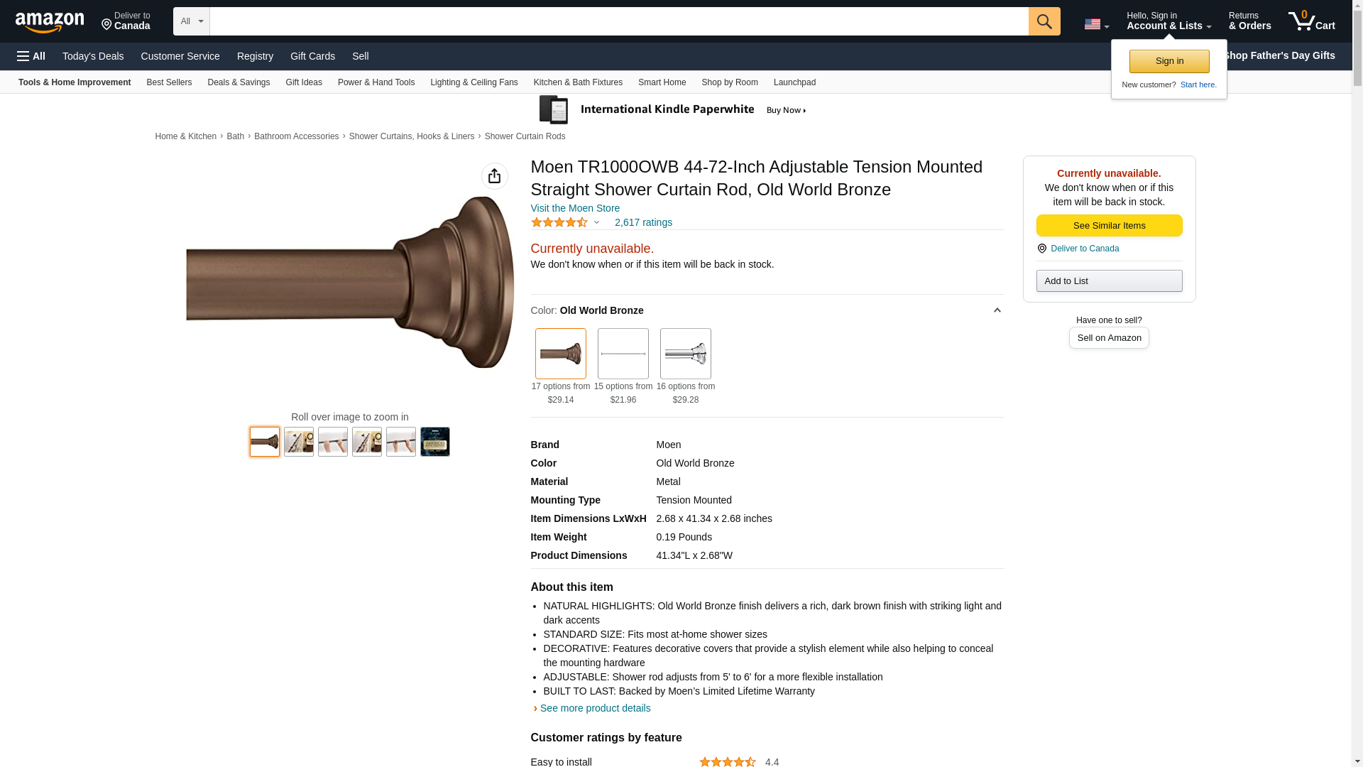 Moen TR1000OWB 44-72-Inch Adjustable Tension Mounted Straight Shower Curtain Rod, Old World Bronze