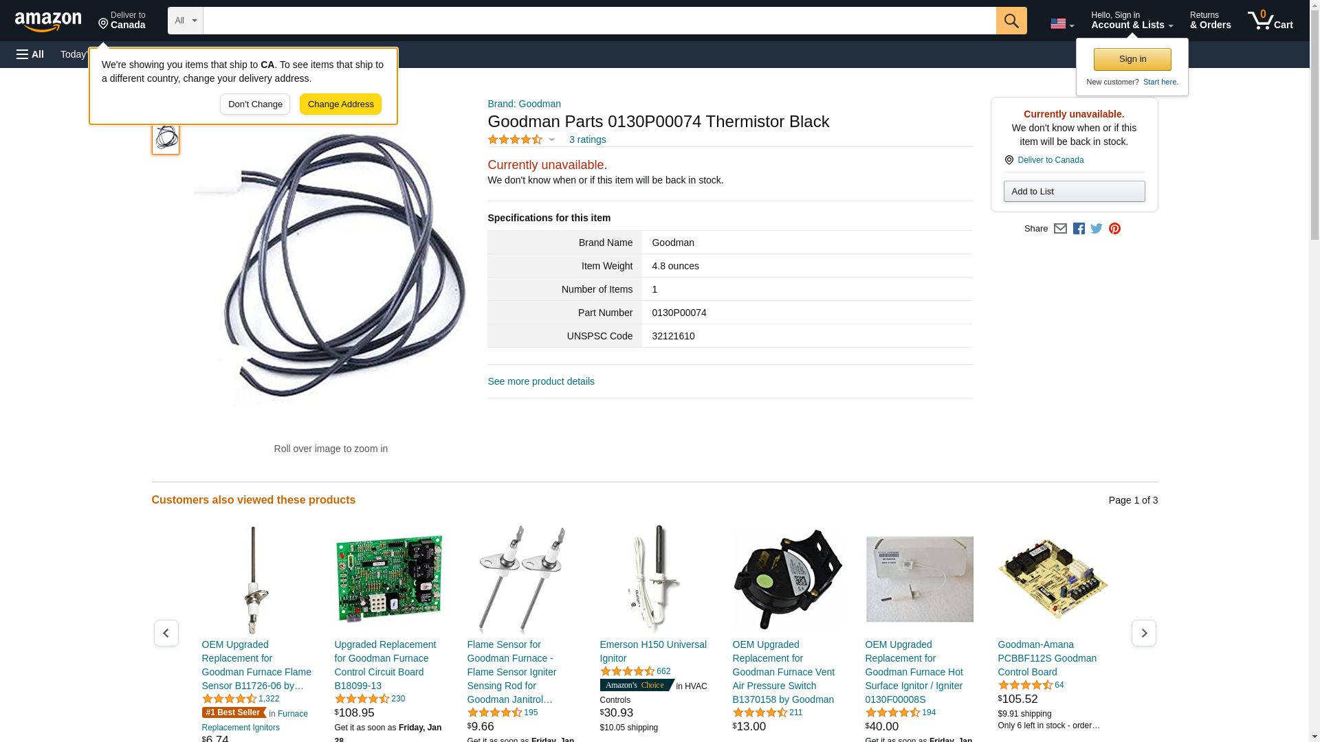 Goodman 0130P00074 Room Air Conditioner Evaporator Thermistor Genuine Original Equipment Manufacturer (OEM) Part