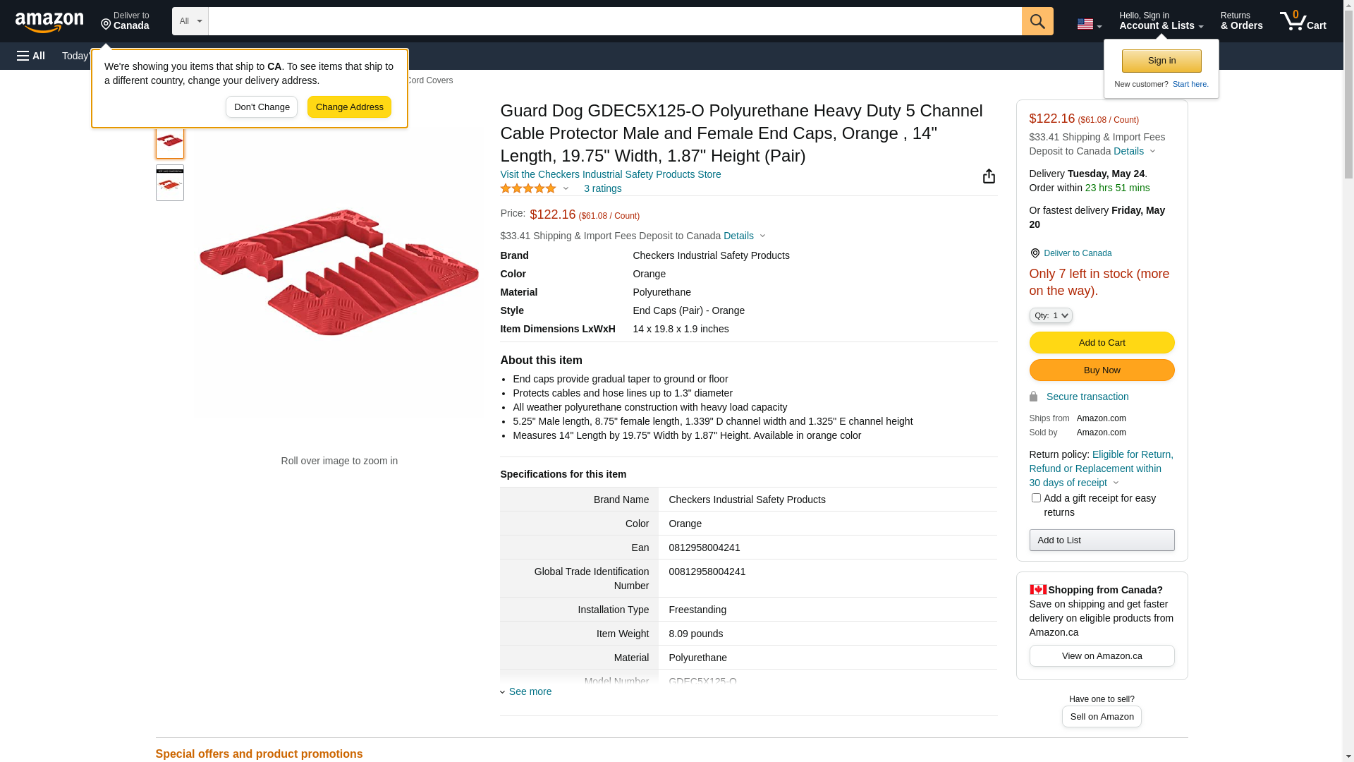 Checkers Industrial Safety Products Guard Dog GDEC5X125-O Polyurethane Heavy Duty 5 Channel Cable Protector Male and Female End Caps, Orange, 14" Length, 19.75" Width, 1.87" Height (Pair)