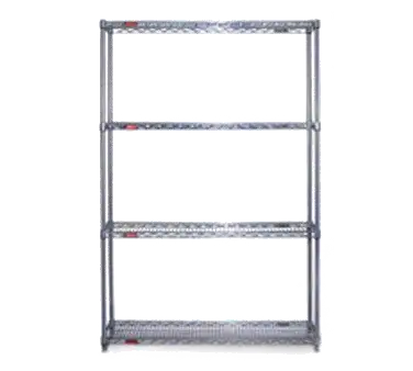 Valu-Master Wire Shelving Starter Unit,gray epoxy finish, NSF Valu-Master™ Wire ShelvingStarter Unit -(4) 21W x 60 L w/Gray Epoxy Finish Patented QuadTruss® design (patent #5,390,803) makes EAGLE shelves up to 25% stronger and provides a retaining ledge for increased storage stability and product retention. Assembly Numerically calibrated grooved posts, tapered plastic split sleeves and shelf collars combine to make shelving assembly a simple two-step exercise: 1) snap the split sleeves onto a post over the number of your choice; and 2) slide a shelf collar over the split sleeves. A positive lock between shelf and post is created without the use of any tools. Open-wire construction promotes higher visibility, allows light to pass through the shelves, permits greater air circulation which helps reduce moisture and dust build-up, and increases the effec