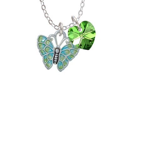 Silver Tone Lime Green & Blue Butterfly - Baby Feet Heart Sophia Necklace. Silver Tone, Hand Enameled Charm. Charm size is approx. 0.6 x 0.64 x 0.08 inches (HxWxD) including loop. 1.5mm Silver Tone Dainty Cable Chain Necklace: 18 Inches with 1 Inch Extender Chain. Lobster Claw Clasp. Mini Silver Tone Heart with Antiqued Baby Feet is approx. 0.52 x 0.49 x 0.14 inches (HxWxD) including loop. Great gift for new mothers, grandmothers, and aunts. We are a family owned company in the U.S.A. since 1977. PLEASE NOTE: Our products are lead safe, but are not intended for children 14 years and younger.