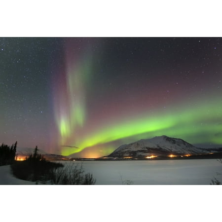 Joseph Bradley/Stocktrek Images Stretched Canvas Art - Aurora borealis over Nares Lake, Carcross, Yukon, Canada. - Large 35 x 23 inch Wall Art Decor Size.