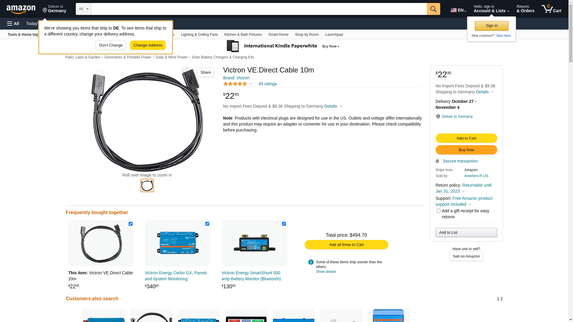 - Victron Energy VE.Direct Cable, length 32.81 feet