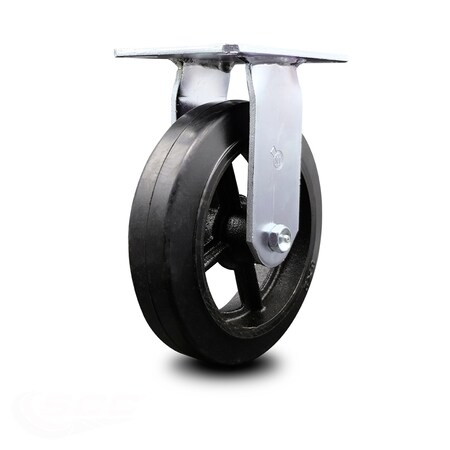 Heavy Duty Large Top Plate Rubber on Cast Iron Swivel Caster w/Main. Free Bearings and 8" x 2" Black Wheel - 500 lbs Capacity/Caster - Service Caster Brand