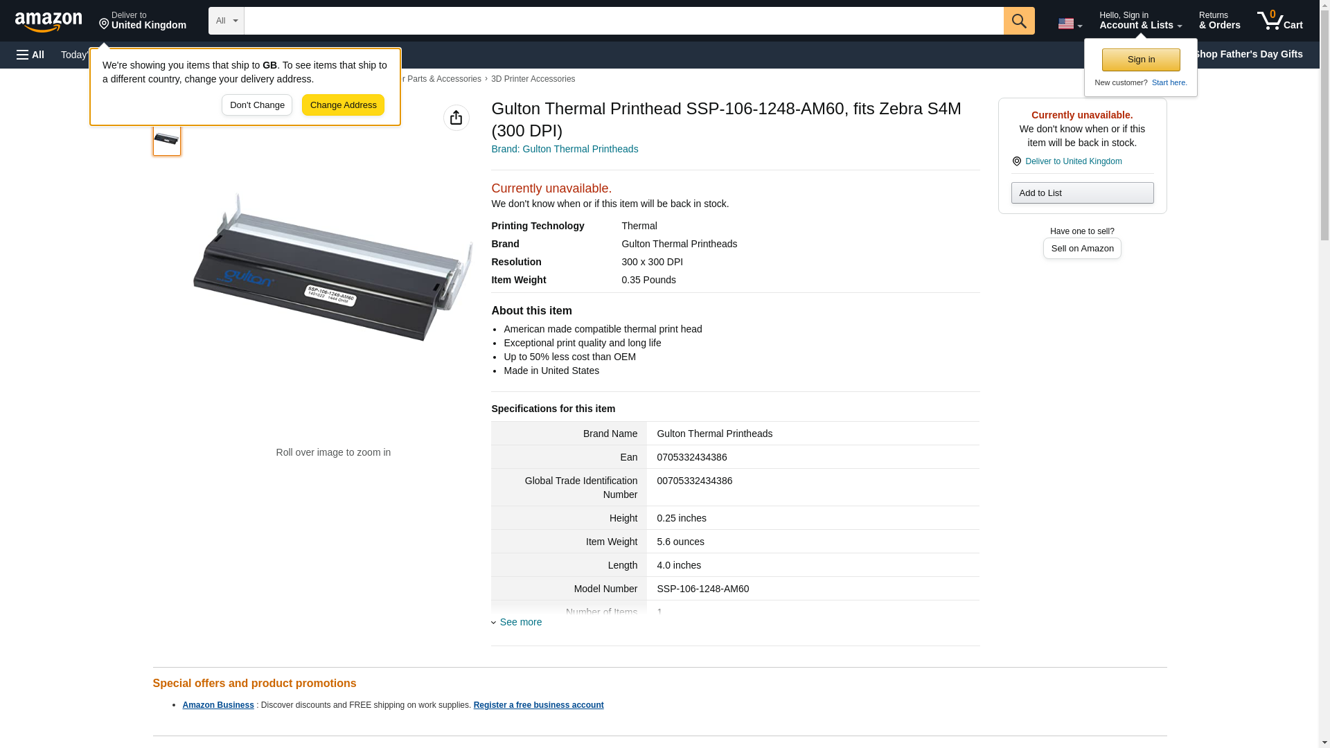 Buy Gulton SSP-106-1248-AM60, Printhead for Zebra S4M - Standard Life - Prime Buy