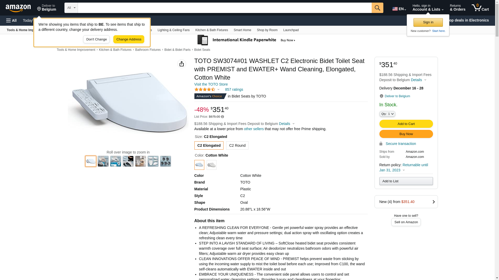 TOTO SW3074#01 WASHLET C2 Electronic Bidet Toilet Seat with PREMIST and EWATER+ Wand Cleaning, Elongated, Cotton White
