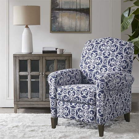 - Design - The Madison Park Kirby pushback recliner is upholstered in navy fretwork pattern, and features high camel back and rolled arms for chic home décor. Just push back with body weight to fully recline up to 22"