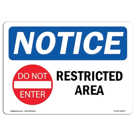 OSHA Notice Sign, Restricted Area With Symbol, 14in X 10in Rigid Plastic