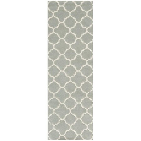 SAFAVIEH Chatham Collection Runner Rug - 2'3" x 11', Grey & Ivory, Handmade Quatrefoil Trellis Wool, Ideal for High Traffic Areas in Living Room, Bedroom (CHT717E)