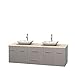 Wyndham Collection Centra 72 inch Double Bathroom Vanity in Grey Oak, Ivory Marble Countertop, Avalon White Carrera Marble Sinks, and No Mirror